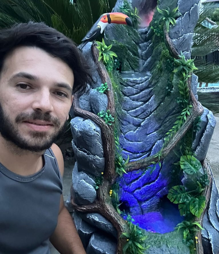 O ponto de virada veio ao criar sua primeira cascata artesanal — e, desde então, se especializou nesse tipo de trabalho.